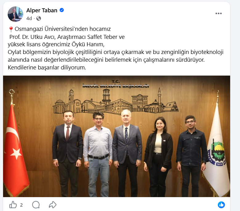 Osmangazi Üniversitesi Öğretim Görevlisi Prof. Dr. Utku Avcı, Araştırmacı Saffet Teber ve Yüksek Lisans Öğrencisi Öykü Hanım tarafından Oylat bölgesinin biyolojik çeşitliliğini ortaya çıkarmak ve bu zenginliğin biyoteknoloji alanında nasıl değerlendirilebileceğini belirlemek için çalışmalar başlatıldı.