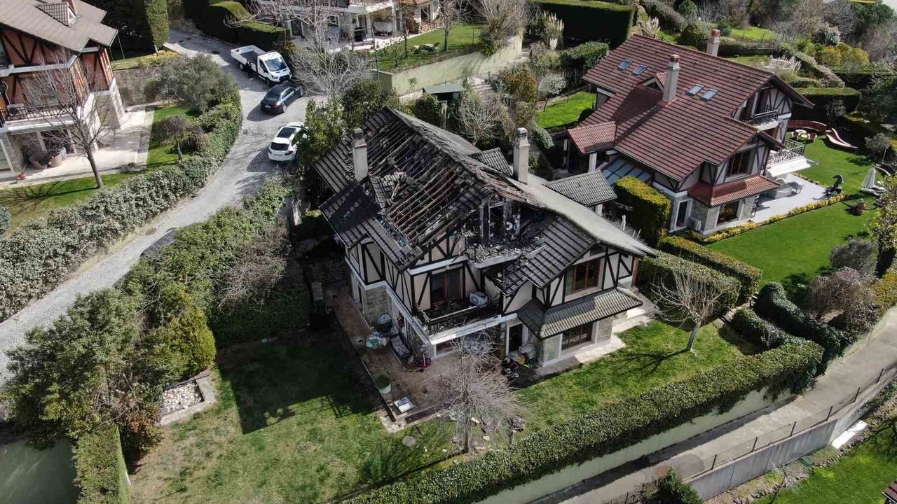 Öte yandan, ünlü oyuncunun çıkan yangında küle dönen çatı katı, havadan görüntülendi.