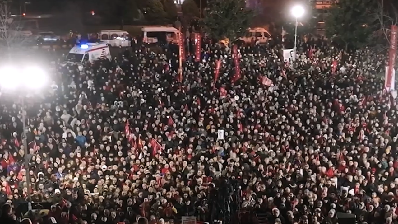 Mustafa Bozbey’in gözaltına alınmasının ardından Bursa’ya gelen Özgür Özel, Büyükşehir Belediyesi önünde düzenlenen mitingde dikkat çeken bir ana imza attı. Kalabalığa hitap ettiği sırada Çınarcık Barajı’nın açılışının eş zamanlı gerçekleştiğini belirten Özel, töreni dev ekranlardan alandaki binlerce kişiye canlı olarak izletti.
