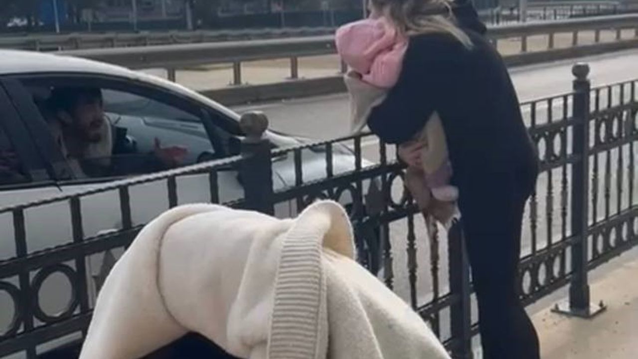 Olay öğle saatlerinde Pendik’te meydana geldi. İddiaya göre, aralarında şiddetli geçimsizlik olduğu belirtilen çift, sokak ortasında tartışmaya başladı. Tartışmanın büyümesiyle erkek şahıs eşinin kucağında bulunan ikiz çocuklardan birini çekerek araca almaya çalıştı. Çocuğunun kıyafetlerini tutarak geri almaya çalışan genç kadın, eşinin aracı hareket ettirmesiyle yerde sürüklendi. Şahsın kaçırmaya çalıştığı çocuk, çevredeki vatandaşların araya girmesi ile eşine verildi. Yaşanan o anlar vatandaşı cep telefonu kamerasına yansıdı.