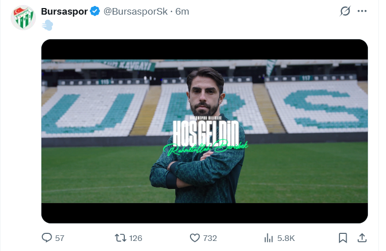 Yeşil-beyazlılar, sosyal medya üzerinden yaptığı paylaşımda Rahmetullah Berişbek’in transferini resmen duyurdu. Böylece Bursaspor, bu transfer döneminde kadrosuna dahil ettiği üçüncü oyuncuya imza atmış oldu.