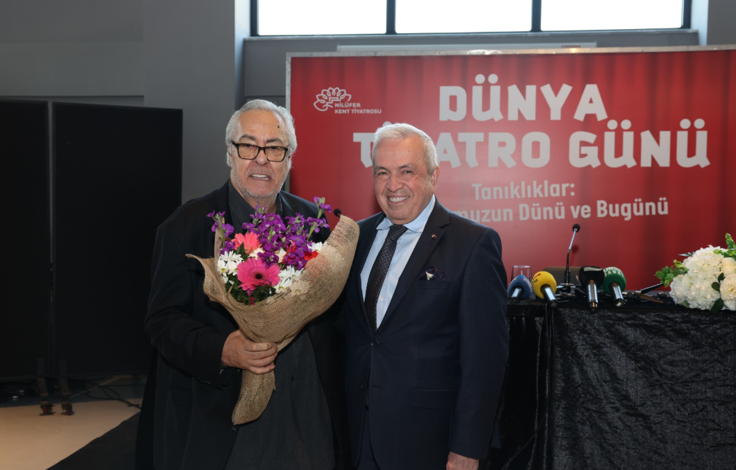 Nilüfer Belediyesi’nin Dünya Tiyatro Günü kapsamında düzenlediği “Tanıklıklar: Tiyatromuzun Dünü ve Bugünü” söyleşisi, Pancar Deposu’nda gerçekleştirildi. Nilüfer Kent Tiyatrosu yöneticisi Kazım Güçlü’nün moderatörlüğünü yaptığı söyleşide usta tiyatro sanatçısı ve yönetmen Rutkay Aziz ile Nilüfer Belediye Başkanı Şadi Özdemir yer aldı. Söyleşinin başında Kazım Güçlü, Süreyya Karacabey’in alternatif Dünya Tiyatro Günü Bildirisi’ni okudu.