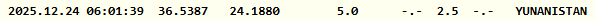 Yunanistan'da meydana gelen deprem sonrası Kandilli Rasathanesi resmi internet sitesi üzerinde yer alan son depremler listesini güncelledi. Buna göre deprem saat 06.01'de 2.5 büyüklüğünde gerçekleşti. Kandilli depremin derinliğini 5 kilometre olarak açıkladı.