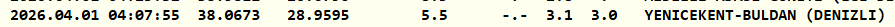 Kandilli tarafından paylaşılan verilere göre deprem saat 04.07'de gerçekleşti. Merkezi Buldan olan deprem yerin 5.5 kilometre derinliğinde meydana geldi.