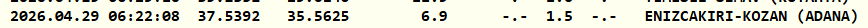 Adana'nın Kozan ilçesinde saat 06.22'de 1.5 büyüklüğünde deprem meydana geldi. Kandilli Rasathanesi, merkezi Kozan olan depremin derinliğini 6.9 kilometre olarak açıkladı.