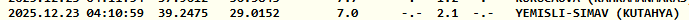 Kandilli Rasathanesi'nin verilerine göre deprem sabah 04.10'da 2.1 büyüklüğünde gerçekleşti. Paylaşılan listede Simav merkezli depremin yerin 7 kilometre derinliğinde meydana geldiği belirtildi.