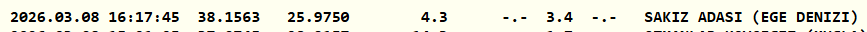 Açıklanan verilere göre deprem saat 16.17'de 3.4 büyüklüğünde gerçekleşti. Kandilli, Sakız Adası merkezli depremin derinliğini 4.3 kilometre olarak açıkladı.