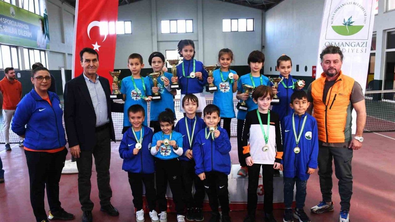 Osmangazi Belediyesi’nin düzenlediği tenis turnuvasına katılan minik tenisçiler birinci olabilmek için kıyasıya yarıştı.