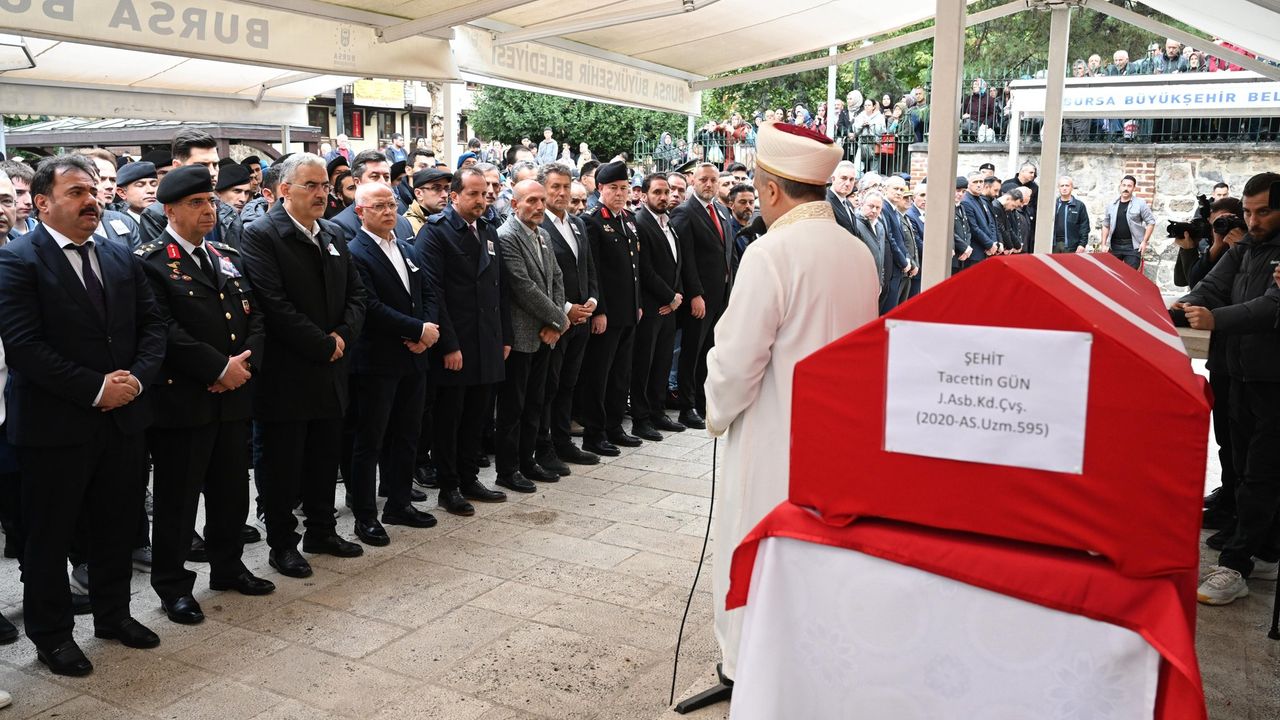 Şehit Jandarma Astsubay Tacettin Gün’ün naaşı, Bursa Ulu Camii’nde ikindi namazının ardından kılınan cenaze namazı sonrasında dualarla Hamitler Şehitliği’nde toprağa verildi.