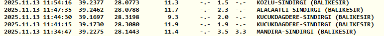 Rasathane kayıtlarına göre ilk deprem saat 11:34'te Mandıra–Sındırgı merkezli olarak 3.5 büyüklüğünde kaydedildi. Ardından yine Sındırgı’da büyüklükleri 1.9, 2, 2.3 ve 1.5 olan artçı depremler meydana geldi. Depremlerin merkez üssünün Kozlu, Alacadeli, Küçükdağdere ve Mandıra mahalleleri olduğu belirtilirken, depremlerin 11.3 ile 11.9 kilometre derinlikte gerçekleştiği bildirildi.