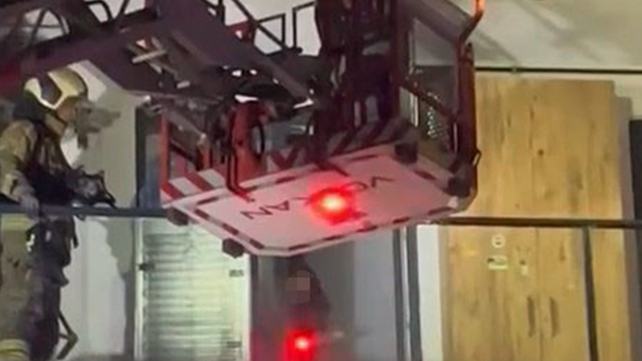 Küçük çaplı başlayan alevlere müdahale etmek için daireye balkondan girmek isteyen itfaiye ekiplerine, sinir krizi geçiren kadın müdahale etti. Eline damacanayı geçiren kadın, itfaiye ekiplerine fırlattı.