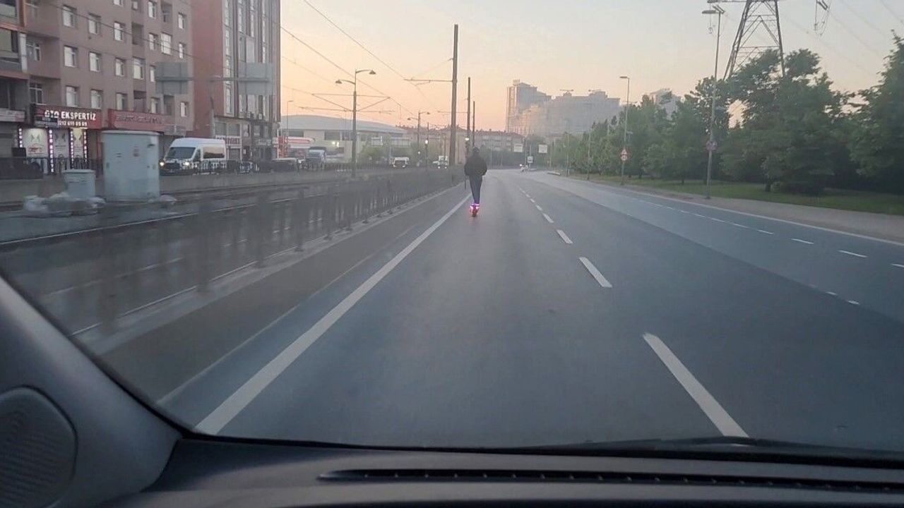 Olay sabah saat 05.30 sıralarında Sultangazi Eski Edirne Asfaltı üzeri, Metris cezaevi istikametinde meydana geldi. Ana yola çıkan elektrikli scooter sürücüsü, yaklaşık 80 kilometre hız ile akan trafikte yolculuk yaptı. Sol şeritten giden scooter sürücüsü, hem kendi hem de diğer sürücülerin canını tehlikeye attı. O anları cep telefonu kamerası ile kayıt altına alan bir başka sürücü ise duruma tepki göstererek, "Şu anda görüyorsunuz ben 70’i geçtim. Bu arkadaş böyle devam ediyor. Şu anda Baştabya’dayız Venezia’ya doğru gidiyoruz, ben şu anda 78 kilometre hızla gidiyorum. Bu arkadaş burada böyle devam ediyor. Bu yasak değil mi ? Arkadaş hem kendi canını, hem de bizim canımızı tehlikeye sokmuyor mu ?" diyerek duruma tepki gösterdi.