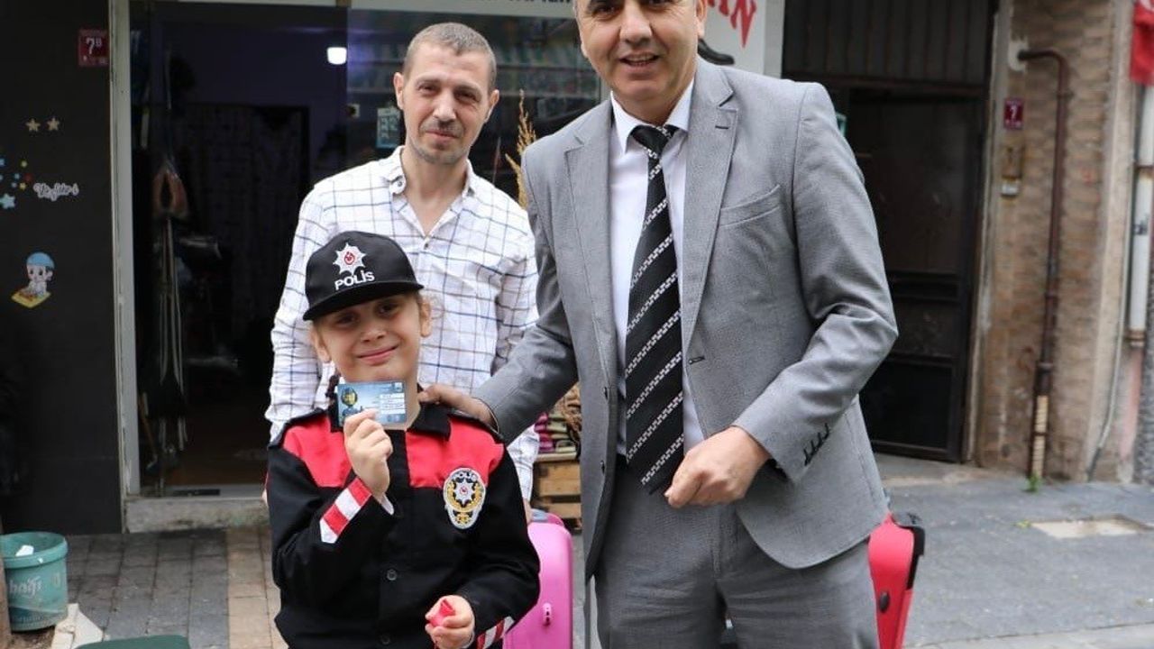 Balıkesir’in Bandırma ilçesinde polis kıyafeti giyerek araç sürücülerine emniyet kemeri taktıran 9 yaşındaki Elif’e fahri trafik dedektifi kimliği verildi.