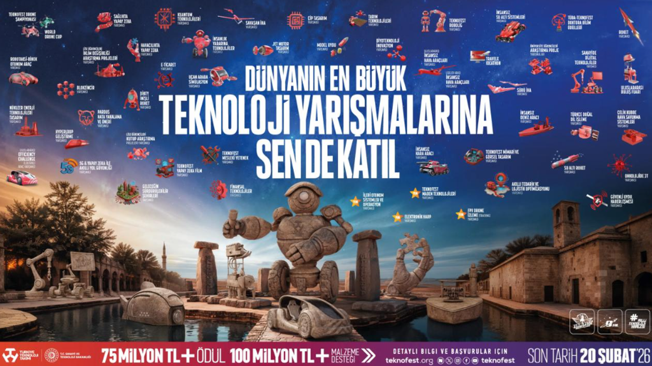 “Geleceği Üretenler” temasıyla düzenlenen TEKNOFEST 2026, genç beyinleri yeni keşifler yapmaya teşvik etmek amacıyla bu yıl rekor seviyede destek sağlıyor. Yarışmalarda dereceye girenlere toplam 75 milyon lira ödül dağıtılacakken, projelerin hayata geçirilmesi sürecinde 100 milyon lirayı aşan maddi destek sunulacak. Fikirlerini projeye dönüştürmek isteyen teknoloji tutkunları, 20 Şubat’a kadar başvurularını iletebilecek.