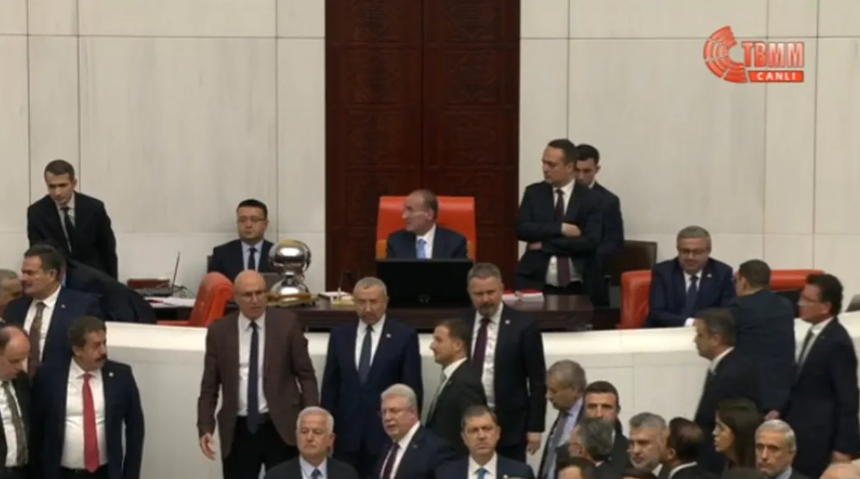 Töreni engellemek için CHP'liler kürsüyü işgal ettiler. Buna karşılık AK Partili vekiller ise Gürlek ve Çiftçi'yi korumak adına harekete geçti. O anlarda vekiller birbirlerine girdi.