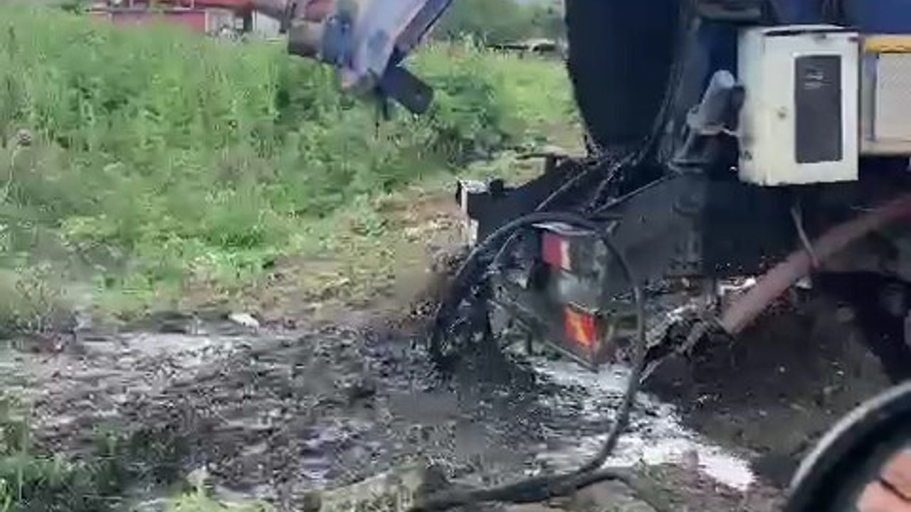 Tekirdağ Büyükşehir Belediyesi Su ve Kanalizasyon İdaresi’ne (TESKİ) ait araç, Ergene ilçesinde dereye atık bırakırken görüntülendi.
