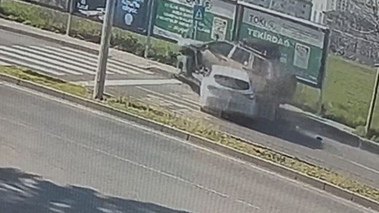 Tekirdağ Çorlu'da otomobilin park halindeki cipe çarptığı kaza anı kameraya yansıdı.