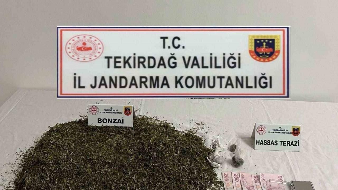 Tekirdağ İl Jandarma Komutanlığı ekiplerince Kapaklı Bahçelievler Mahallesi’nde T.K. isimli şahsın evinde yapılan arama sonucunda 2 kilo 40 gram bonzai, 4 fişek bonzai, 10 gram bonzai, 1 adet hassas terazi ve bin TL suçtan elde edilen para ele geçirildi.