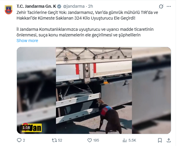 Van’da İran’dan Türkiye’ye giriş yapan gümrük mühürlü bir tırın dorsesinde yapılan aramada 156 kilogram skunk ve 133 kilogram metamfetamin bulundu. Hakkari’de ise bir evin kümesinde yapılan aramada çuvallar içine saklanmış 35 kilogram eroin ile uyuşturucu imalinde kullanıldığı değerlendirilen çeşitli düzenek ve malzemeler ele geçirildi.