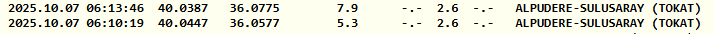 Kandilli Rasathanesi, Tokat'ta meydana gelen ilk depremin büyüklüğünü 2.6 olarak açıkladı. Bu deprem saat 06.10'da kaydedildi. Saat 06.13'te meydana gelen ikinci deprem ise yine 2.6 büyüklüğünde kaydedildi. Kandilli merkez üssü Sulusaray olan depremlerin derinliğini sırasıyla 5.3, 7.9 kilometre olarak açıkladı.