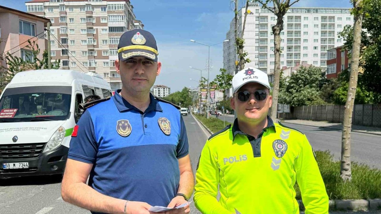 Tekirdağ Kapaklı’da İlçe Emniyet Müdürlüğü ve Kapaklı Belediyesi Zabıta Müdürlüğü ekipleri tarafından sürücülere “Hayatla Yarışılmaz” mottosunun bulunduğu afiş ve broşürler dağıttı.