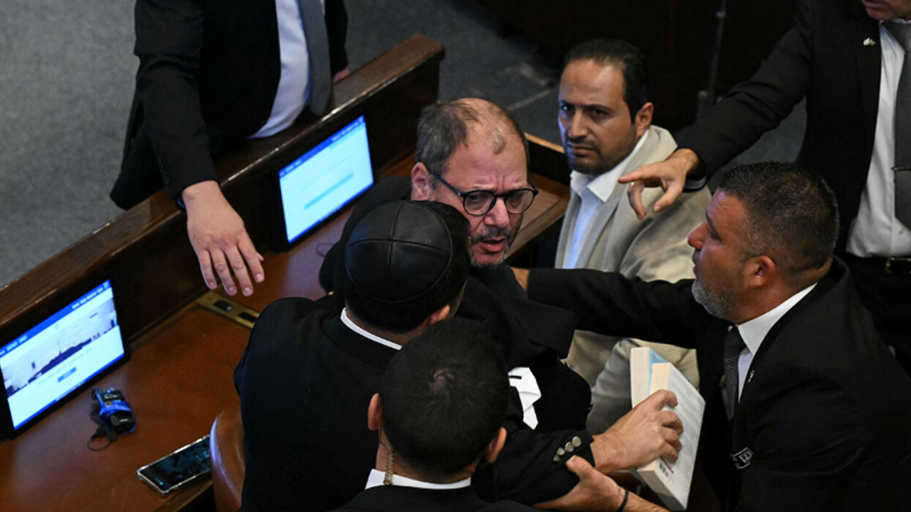 Knesset Başkanı Amir Ohana, Trump'ın konuşmasını keserek, "soykırım" ve "Filistin'i tanıyın" yazılı pankartlar taşıyan milletvekilleri Ayman Odeh ve Ofer Cassif'in genel kuruldan çıkarılmasını istedi.