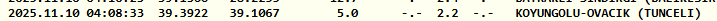Resmi internet sitesi üzerinden alınan bilgilere göre deprem saat 04.08'de 2.2 büyüklüğünde gerçekleşti. Ovacık merkezli depremin yerin 5.0 kilometre derinliğinde gerçekleştiği belirtildi.