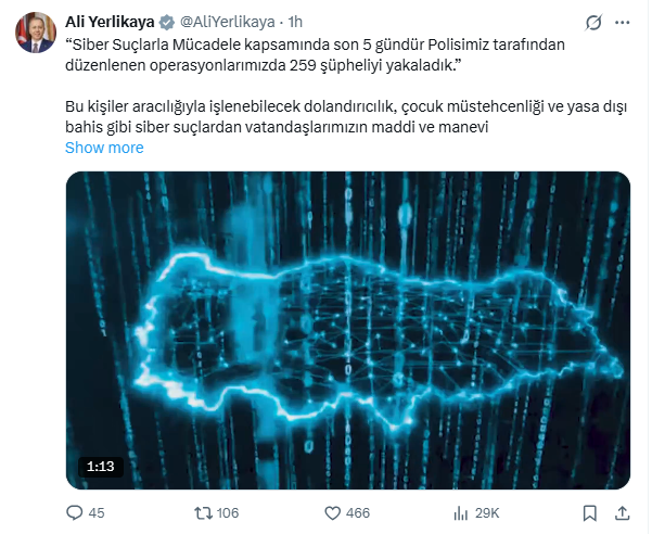Bakan Yerlikaya, yakalanan şüpheliler aracılığıyla işlenebilecek dolandırıcılık, çevrim içi çocuk müstehcenliği ve yasa dışı bahis gibi suçlardan vatandaşların maddi ve manevi zarar görmesinin engellendiğini vurguladı.