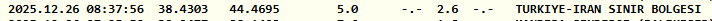 Saat 08.37’de kaydedilen depremin büyüklüğü 2.6, derinliği ise 5.0 kilometre olarak ölçüldü. Depremin merkez üssünün Türkiye–İran sınır hattında yer aldığı bildirildi.