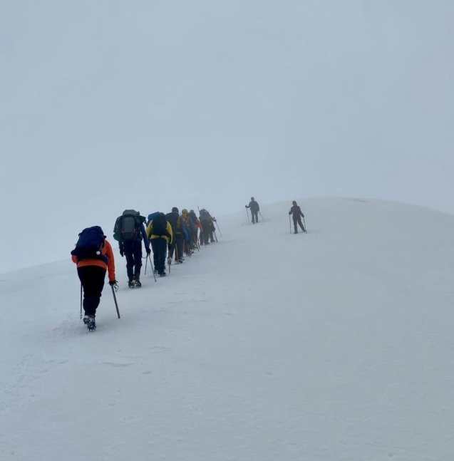 Görüş mesafesinin düşük olduğu, yaklaşık 5 saat süren tırmanışın ardından geri dönen ekip, bembeyaz karlar üzerinde Türk Bayrağının dalgalanmasının mutluluğunu yaşadı.