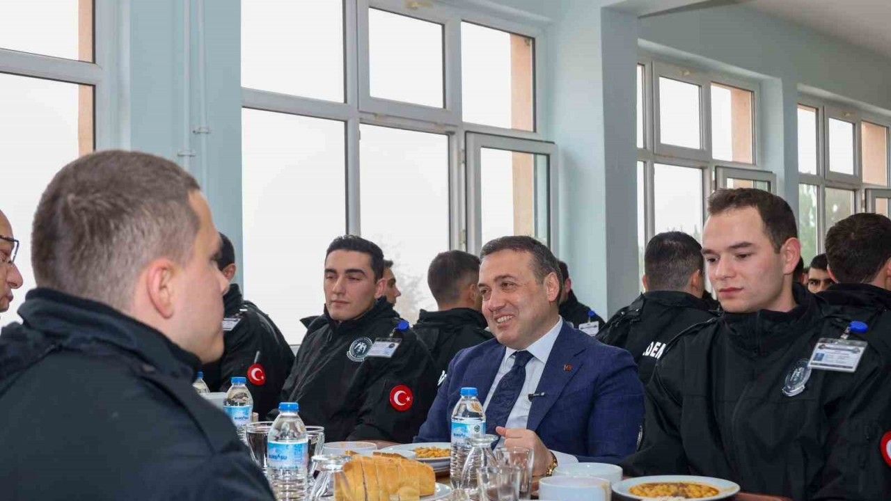 Ziyaret kapsamında POMEM’de yürütülen eğitim faaliyetleri hakkında bilgi alan Valimiz, kurum personeliyle de bir araya geldi. Programın devamında Vali Sözer, kahraman polis adaylarıyla öğle yemeğinde bir araya gelerek sohbet etti. Eğitim süreçleri, meslek idealleri ve görev bilinci üzerine görüş alışverişinde bulunan Vali Sözer, polis adaylarına başarılar dileyerek, fedakârlık ve sorumluluk bilinciyle yürüttükleri bu kutsal yolculukta her zaman yanlarında olduklarını ifade etti.