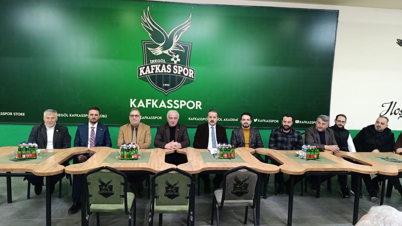 Ziyarette bir konuşma yapan Kafkasspor Başkan Vekili Bahattin Korkmaz, "Çok kıymetli Kafkassporlular, Kafkas camiasına gönül vermiş herkes hoş geldiniz. Sayın Bakanım sefalar getirdiniz bize onur verdiniz bu mübarek Ramazan gününde bize. Burası biliyorsunuz çok eski zamanlarda sizin çabalarınız buraya gelmiş bir kulübüz. Biz yıllar önce mahalle takımı iken şimdi Sayın Bakanım Türkiye’de 2 tane çok az ucuz bütçelerle kurulmuş takım var; Biri Edirnespor diğeri Kafkasspor. Şu anda Edirnespor sonuncu biz lideriz. Sizlerin destekleri ve çabalarıyla bizde bir şeyler yapmaya çalışıyoruz. Başkanımız hasta, grip olduğu için çok selamları var gelemedi. Bu hafta Polatlı maçımız var pazar günü. Sizleri de davet edelim bu vesileyle. Bizim 3 tane kritik maçımız kaldı: Bursa Yıldırım, Çorluspor ve Edirnespor. Biz zaten bu maçları aldığımızda inşallah İnegöl’ümüz 2. Lig takımı oluyor. Çok çabalar gösteriyoruz. Bu camiada abilerimiz, iş adamlarımız sizlerin destekleriyle bir yerlere gitmeye çalışıyoruz, uğraşıyoruz. İnşallah yolun sonu hedef şampiyonluk olacak artık oraya kitlendik. Çocuklar 15 haftadan beri hiç mağlup olmadılar. Galibiyet serisi harıl harıl gidiyor. Tabii ki böyle gidince maddi sıkıntıları da beraberinde getiriyor ama camiamız çok sahip çıkıyor. Siyasetçilerimiz de sahip çıkmaya başladı. Hedef şampiyonluk diyorum" dedi.