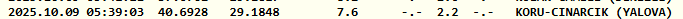 Depremin ardından resmi internet sitesi üzerinden verileri yayınlayan Kandilli depremin saat 05.39'da gerçekleştiğini belirtti. Çınarcık merkezli deprem yerin 7.6 kilometre derinliğinde kaydedildi.