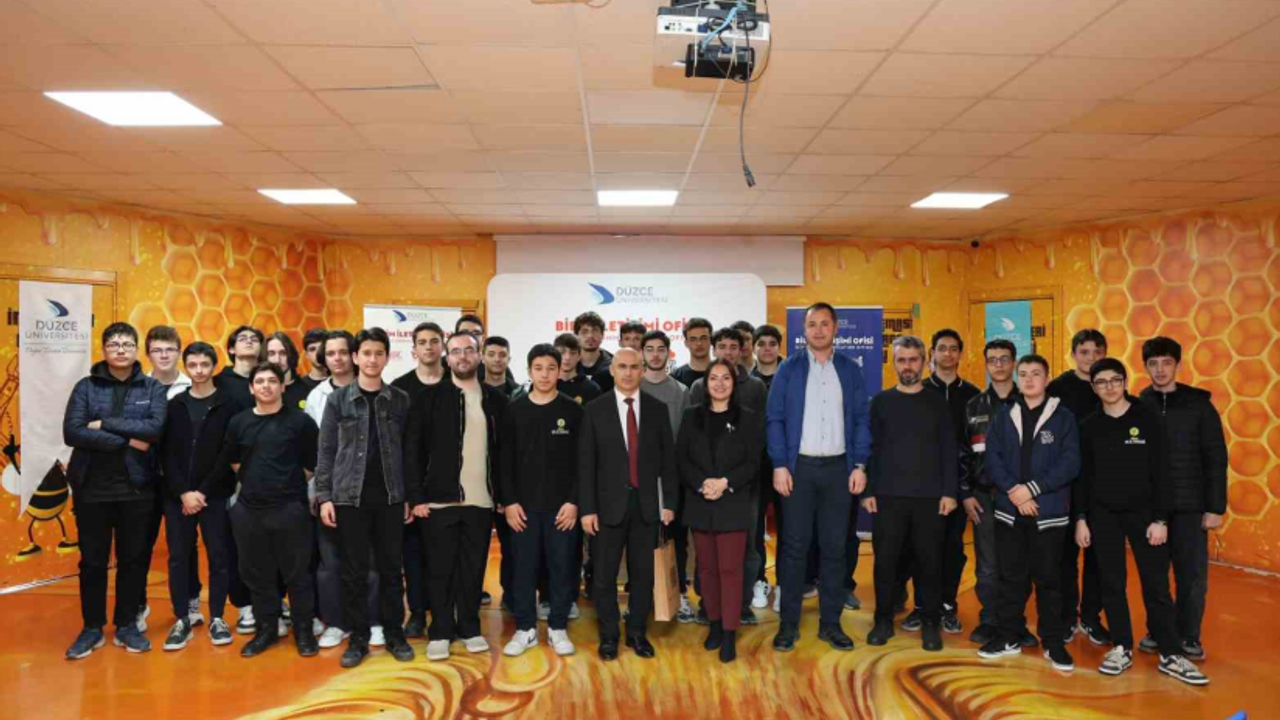 Düzce Fen ve Teknoloji Hafız Anadolu İmam Hatip Lisesi’nde yoğun katılımla düzenlenen etkinlikte, Mühendislik Fakültesi Dekanı ve Düzce Teknopark Müdürü Prof. Dr. Resul Kara, yapay zekanın günümüz dünyasındaki yeri, çalışma prensipleri ve geleceğe etkilerini ele aldı.