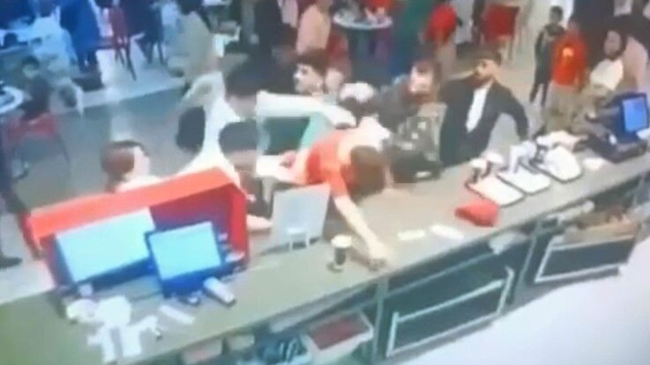 Esenyurt’ta alışveriş merkezinde hamburger sipariş eden genç kız, köftenin pişmediği söyleyerek değiştirmek istedi. Restoran personeli değişimi reddedince sözlü tartışma çıktı. Tartışmanın büyümesi üzerine kadının yanındakiler restoran çalışanını tekme tokat dövdü. Ortalığın savaş alanına döndüğü o anlar kameraya yansıdı.