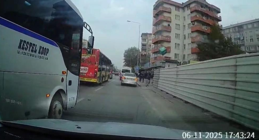 Olay, merkez Yıldırım ilçesi Ankara Yolu Caddesi üzerinde meydana geldi. Edinilen bilgiye göre, 16 S plakalı servis aracı ile plakası öğrenilemeyen otomobil arasında trafikte yol verme tartışması çıktı. Sürücüler birbirleriyle yol verme kavgası yaşarken o anlar araç kamerasına anbean yansıdı.