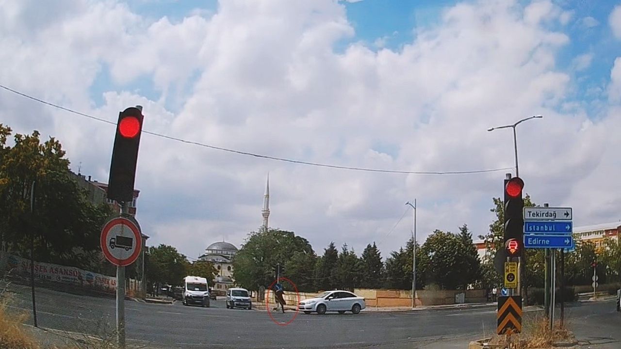 Görenlerin şoke olduğu bu kazadan sağ salim kurtulan şanslı yaya, yoluna devam etti.